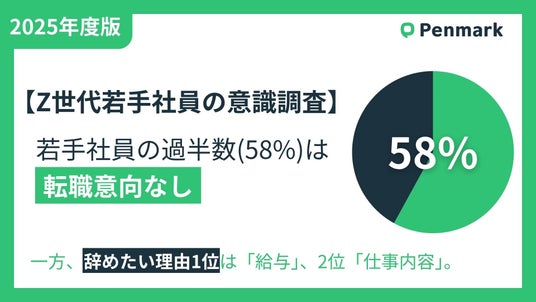 株式会社ペンマーク(本社:東京都目黒区、代表取締役:横山直明、以下ペンマーク)は、全国のZ世代の若手社会人を対象に、Z世代の就業意識調査の一環として「現在の会社に対する転職意向とその理由」に関するアンケート調査を実施しました。