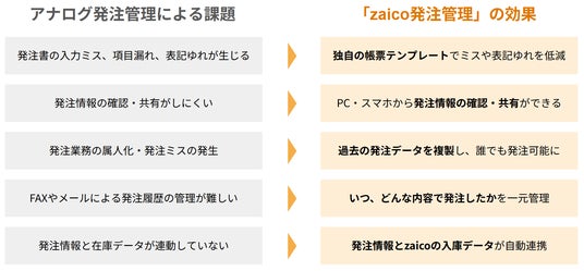 こうした状況を踏まえ、当社は2025年10月に「zaico受注管理」を先行リリースし、受注業務のデジタル化に取り組んでまいりました。今回の「zaico発注管理」は、その流れを継ぎ、発注業務の効率化を実現するサービスとして提供を開始するものです。
