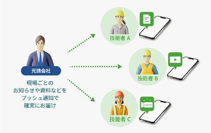 本アプリは、建設現場におけるコミュニケーション(情報伝達・意思疎通)の課題を解消し、生産性向上に貢献します。さらに、建設業向けクラウドサービス「建設サイト・シリーズ」で管理する280万人以上(※1)の技能者データを活用し、技能者一人ひとりへの確実な情報伝達やインセンティブ付与を可能にすることで、技能者のエンゲージメント向上を実現します。また、建設業界の重要課題の一つである将来の担い手不足の解消に向け、デジタルトランスフォーメーション(DX)を通じて働きやすさを向上させ、担い手を育成・確保するためのITツールとしての活用も目指します。