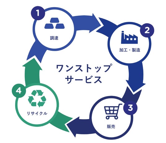 田中貴金属では、貴金属リサイクルにおいて、独自のリサイクル技術とワンストップでのトータルソリューション(ワンストップサービス)を提供しています。貴金属の「調達」から「加工・製造」「販売」、そして「リサイクル」に至るまで、すべての工程を田中貴金属だけで対応できます。これは創業以来培ってきた調達ルート、高度な技術力、製品開発力、研究体制、国内外のネットワークが支える総合力によるものです。ワンストップサービスを通じて、資源の効率的な回収を実現し、サプライチェーンの強靭性を高めることで、循環型経済の推進に貢献しています。今後も、次世代の半導体製造を支える長期的なパートナーとして、持続可能な産業の発展に寄与してまいります。