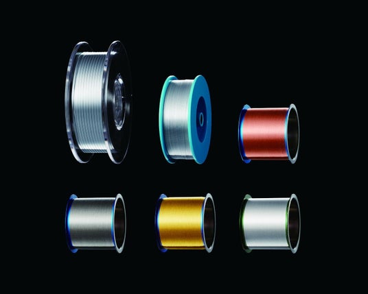 電気信号の接続材料として、金(Au)、銀(Ag)、銅(Cu)、アルミニウム(Al)の極細線(10∼38µm)やパワーデバイス用の太線(100∼500um)等 のボンディングワイヤおよびリボンを提供しております。表面が平滑かつ清浄で寸法安定性に優れたワイヤを、金属接合のノウハウも含めたソリューションと共に提案します。