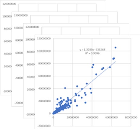・10品目の全ての相関係数(R2値)を求める