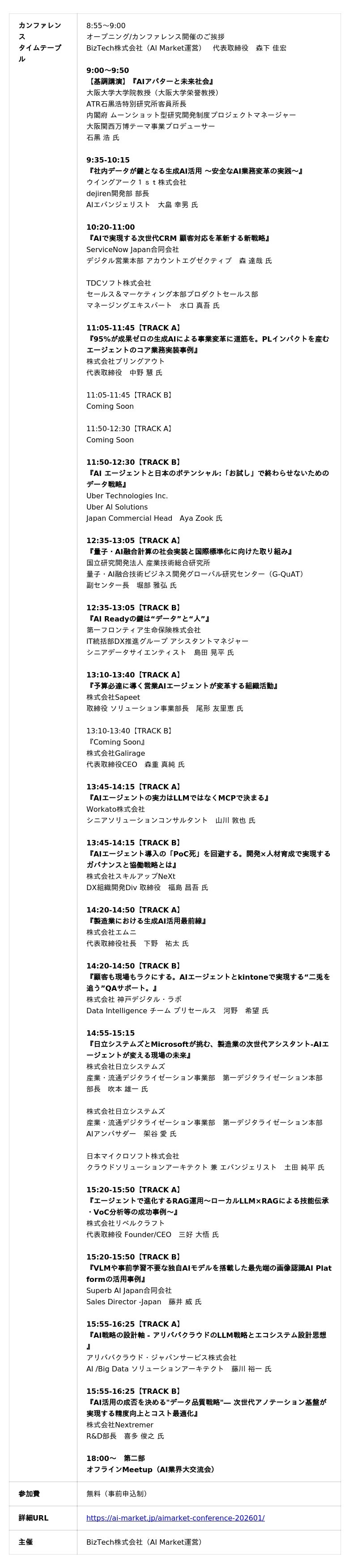 最適なAI会社やAIサービスの選定を支援するコンシェルジュサービス「AI Market」を運営するBizTech株式会社(東京都豊島区、代表取締役 森下 佳宏)が主催する、1月28日開催の国内最大級AIカンファレンス『AI Market Conference 2026』に登壇する株式会社リベルクラフト 三好氏の講演内容をお知らせ致します。