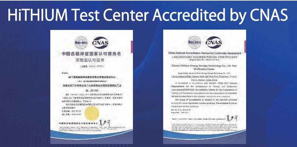 HiTHIUMテスト検証センターはTUV RheinlandとCNASによって認定されています。