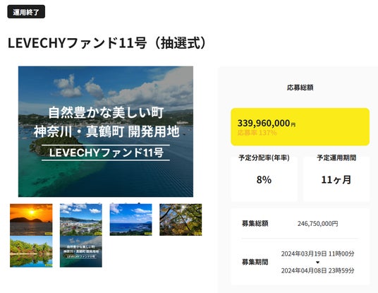 1万円から始める賢い資産運用「LEVECHY(レベチー)」を展開する株式会社LEVECHY(所在地:東京都港区赤坂、代表取締役:高 将司)は、2025年4月18日(金)に「LEVECHY」の第11号ファンドである「LEVECHYファンド11号」の償還及び配当が完了したことをお知らせいたします。