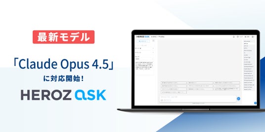 HEROZ株式会社(本社:東京都港区、代表取締役CEO:林 隆弘、以下「HEROZ」)は、法人向け生成AI SaaS「HEROZ ASK」において、2025年11月25日公開されたAnthropic社の最新AIモデル「Claude Opus 4.5」へのアップデート対応を完了しました。Claude Opus 4.5はコーディング、エージェント等において世界最高レベルのモデルで、これまでのモデルに比べ大幅に性能が向上しています。「HEROZ ASK」は、今後も最新モデルへの対応を継続し、より高い生産性と利便性をお客様に提供してまいります。
