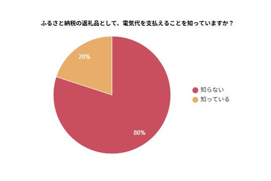 調査対象者にふるさと納税で電気代を支払えることを知っているかアンケートを取ったところ、「知っている」方は20%にとどまり、80%の方が「知らない」と回答しました。