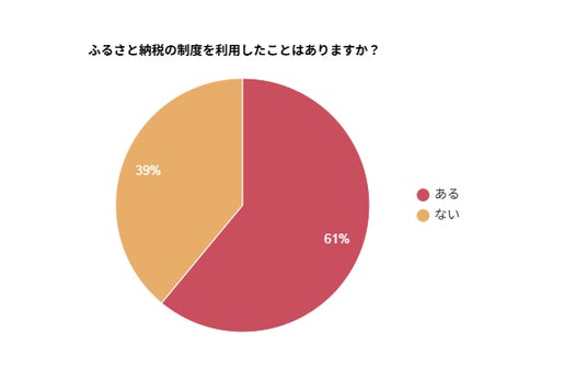 ふるさと納税の制度を利用したことがあると回答した方は、61%と過半数を占めました。ふるさと納税の制度自体は普及率が高いことが伺えます。