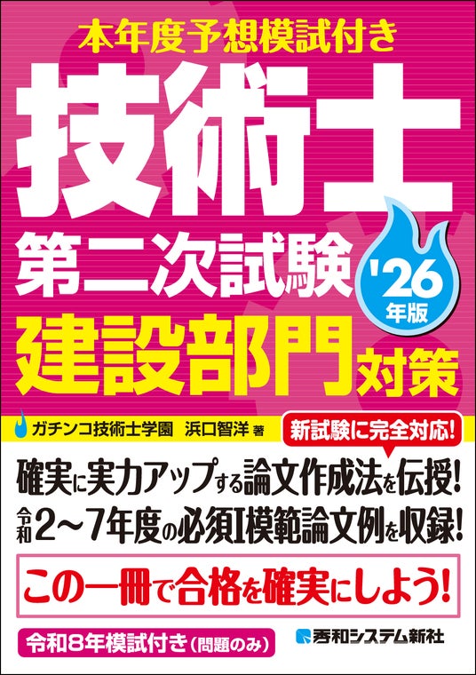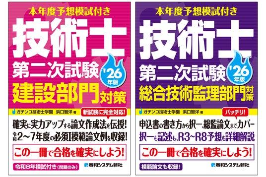 株式会社秀和システム新社(東京都千代田区・代表取締役 津島憲豪)は、難関国家資格として知られる技術士試験の対策書として、『本年度予想模試付き 技術士第二次試験建設部門対策'26年版』および『本年度予想模試付き 技術士第二次試験 総合技術監理部門対策 '26年版』を、2026年2月24日に同時刊行いたします。