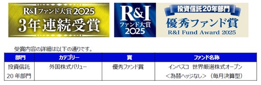「世界のベスト」はR&Iファンド大賞2025の受賞ファンドです