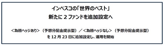 <為替ヘッジあり>(予想分配金提示型)/<為替ヘッジなし>(予想分配金提示型)を12月23日に追加設定し、運用を開始