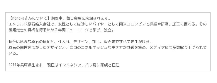 そんなジュエリーを創り出す、honokaさんもまた、高いエネルギーとパワーを持った女性なのです。