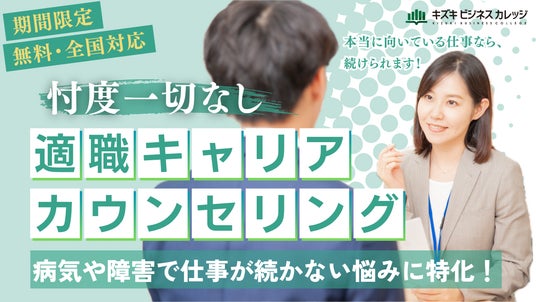 「病気・障害と仕事・働き方」にお悩みのある方のために、無料のオンライン適職&キャリアカウンセリングキャンペーンを実施します。期間は、2025年4月30日まで!この機会に、ぜひご利用ください。