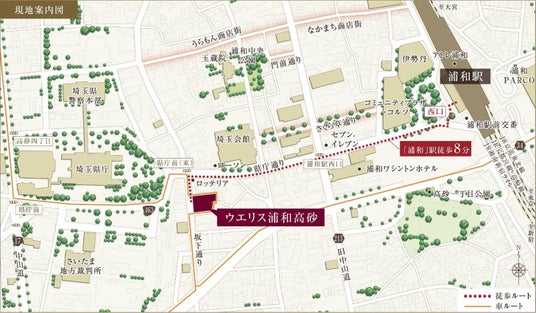 ・「浦和PARCO」や「伊勢丹 浦和店」など利便性の高い商業施設で賑わう浦和駅前から続く「県庁通り」を進んだ、官公庁(埼玉県庁、さいたま市役所、浦和区役所など)が集積する落ち着きのあるエリア