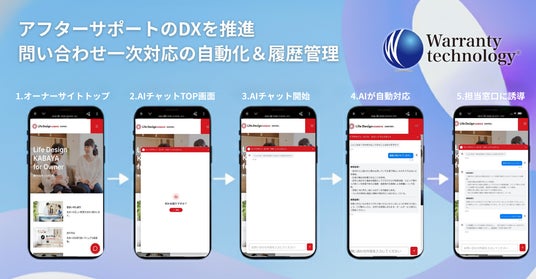 延長保証サービスの構築・運営を行う株式会社Warranty technology(本社:東京都千代田区、代表取締役CEO:宮原 年明、以下「ワランティテクノロジー」)は、ライフデザイン・カバヤ株式会社(以下「ライフデザイン・カバヤ社)向けに、AIチャットと顧客管理システム(CRM/WOS)を連携した新たなアフターサポートソリューションの提供を開始したことをお知らせいたします。