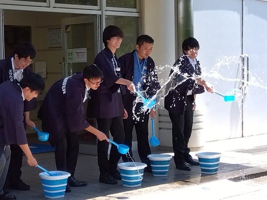 *各所をオンラインモニターでつなぎ、一斉に打ち水をします。