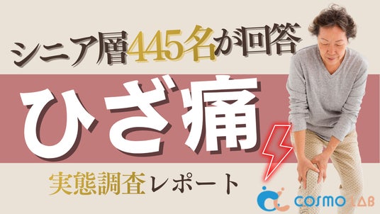 シニア専門のマーケティングプラットホーム コスモラボ(会社名:コスモヘルス株式会社、本社:東京都港区、代表取締役社長 小塚 崇史)がシニア層の『ひざ痛』に関するアンケートリサーチのレポートをリリースしました。本レポートでは、50代以上のシニア層を対象に、ひざ痛に関する実態を調査しました。ひざ痛に関する経験の有無、痛みを強く感じる場面、要因として認識する内容、症状の強さ、困りごと、将来への不安、対処法と効果の実感まで、シニア世代のひざ痛に関する実態が明らかになりました。