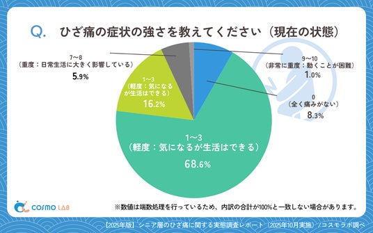 「1~3(軽度:気になるが生活はできる)」(68.6%)が中心で、「1~3(軽度:気になるが生活はできる)」(16.2%)が続きました。