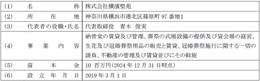 横濱聖苑社への企業出資は、我が国の超高齢化社会において「ハッピーエンディング」をテーマとした新しい葬儀場・都市室内型墓所への不動産再生を行うことが社会課題の解決を目指すに価すると考え、2019年5月に持分法適用会社としました。