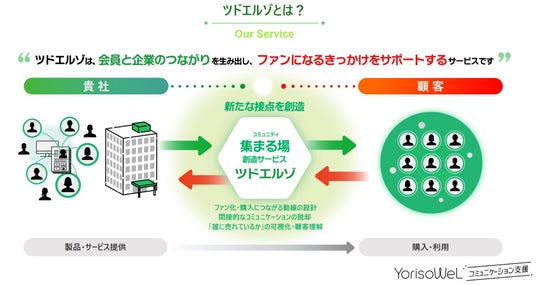 こうした背景のもと、学びの体験を通じてエンゲージメント強化・コミュニティ形成を促進する当社の学びコンテンツ「YorisoWeL(ヨリソウェル)」から、企業が保有する顧客リストや会員基盤を生かし、リアル・オンラインの講座やイベントを通じて“共感と学びの場”を提供する「ツドエルゾ」の提供を開始します。