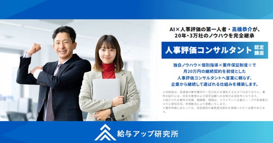 株式会社給与アップ研究所(本社:東京都渋谷区、代表取締役:高橋 恭介)は、人事評価を専門スキルとして体系的に学べる「人事評価コンサルタント認定講座」の公式ランディングページ(LP)を公開いたしました。