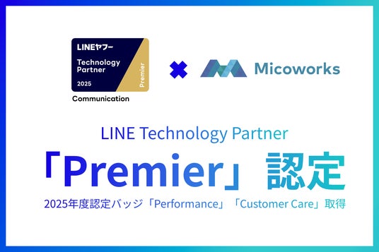 Micoworks株式会社(本社:大阪市北区、代表取締役:山田 修、以下、当社)は、LINEヤフー株式会社(本社:東京都千代田区、代表取締役社長:出澤 剛)が提供するマーケティングソリューションの導入ならび支援など各領域に特化したパートナーを認定する「LINEヤフー Partner Program」において、2025年度の「Technology Partner」のコミュニケーション部門「Premier」に認定され、認定バッジ「Performance」「Customer Care」を取得いたしました。