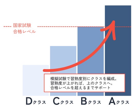 オリジナルのテキストを活用しながら、最終的に、全員がBクラス以上=合格レベルに達するまでサポートしています。