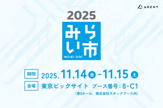 株式会社Arent(本社:東京都港区、代表取締役:鴨林広軌、東証グロース:5254)は、2025年11月14日(金)から開催される「みらい市 2025」にて、Arentグループの株式会社スタッグの展示ブース内で出展します。初出展となる本展示では、AI技術を活用した建設業向けのソリューションを紹介し、グループにおける製品展開の広がりを紹介します。