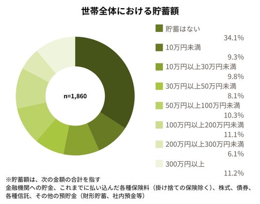 また、回答者の世帯全体における貯蓄額について質問したところ、「貯蓄はない」が最も多い割合を占めました。