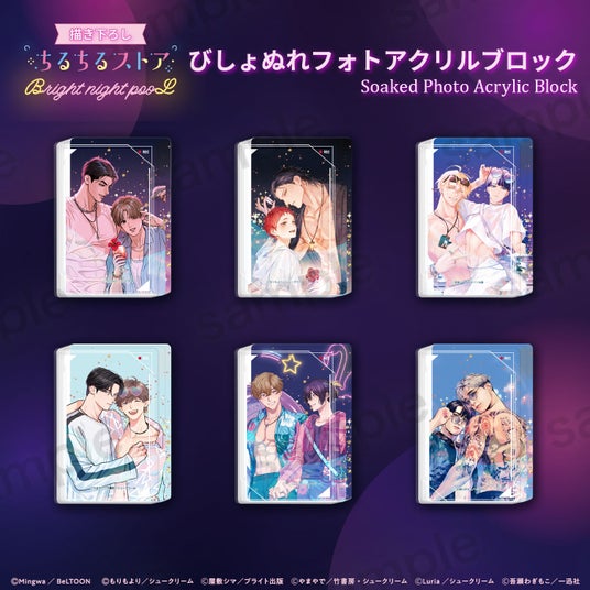 BLアワード2025を記念したアクリルブロックです。なんと、ブロック前面にプールの水を模したオイル入り!まるで2人が水につかっているようなナイトプールテーマならではのスペシャル仕様です(ハート)さらに背景にはキラキラグリッターも!