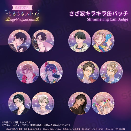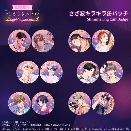 BLアワード2025を記念した缶バッチです。テーマにちなんで、背景はきらめく水面を思わせるホログラム加工でお届け。キャラクター単体の缶バッチ2つをセットにしてのご用意です。