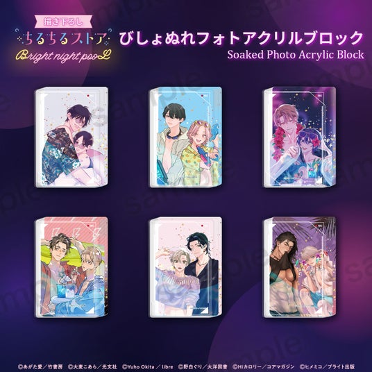 ポストカード/アクリルスタンド/さざ波キラキラ缶バッチ/複製サイン入りホログラムビジュアルボード/びしょぬれフォトアクリルブロック/ぷにぷにハートキーホルダー