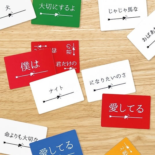 このゲームはそんな最高の瞬間を何度も繰り返し体験することができるゲームです。配られたカードを自由に組み合わせて最高のプロポーズの言葉を作りましょう!