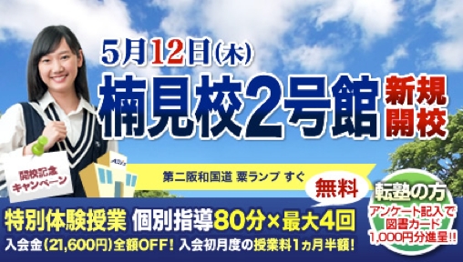 ぜひこの機会に、新たに仲間入りした「個別指導Axis楠見校2号館」をご利用ください。