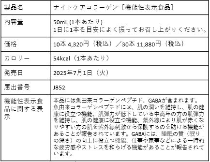 そして2025年、その50年以上にも及ぶ「コラーゲンのプロフェッショナル」としての研究実績を応用し、「肌×睡眠」設計をさらに研ぎ澄ませる形で飛躍的な進化を遂げたのが、「ナイトケアコラーゲン」[機能性表示食品]です。