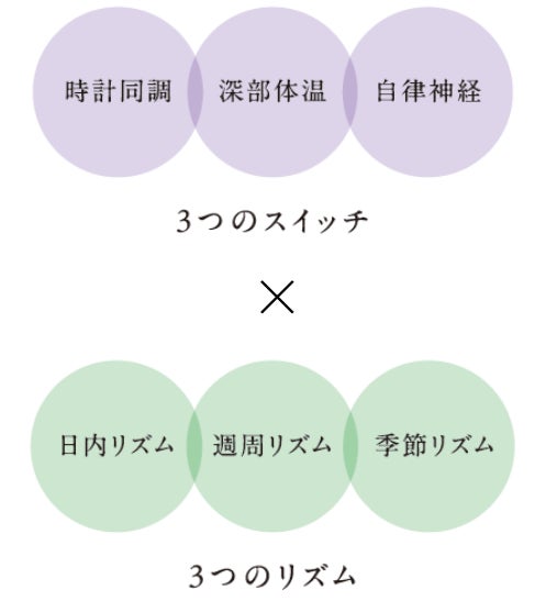 「現代社会を生きるための、漢方発想ライフスタイル商材」としての独自設計を更にパワーアップ。食・入浴などを、新たな発想でとらえて日々の「活動(ON)/休息(OFF)」の切り替えとして活かしつつ、日常生活における「日内」「週」「季節」という3つの時間軸と「時計同調」「深部体温」「自律神経」という3つのスイッチを掛け合わせ、生体リズムの最適化を図る製品やサービスを提案します。その先にある、いくつになっても「明日が楽しみと思える毎日」を――それが、漢方の製薬会社発・新ブランド「ポジティブリズム」の理念です。