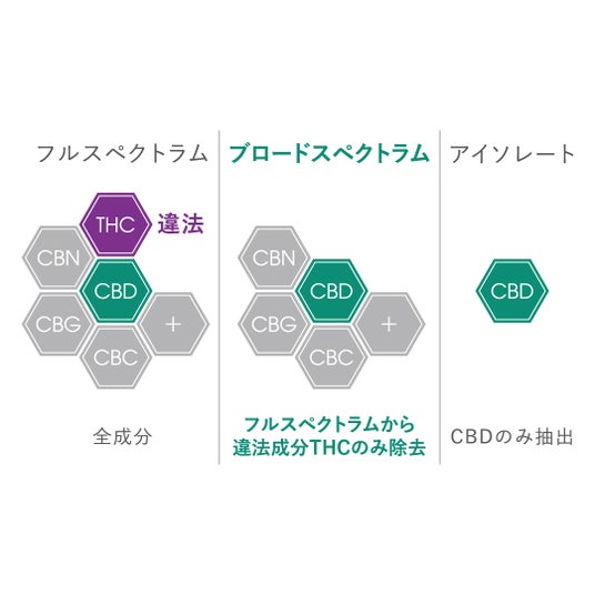 2. THCフリー(<1ppm)のブロードスペクトラムCBDを使用ヘンプやカンナビス(大麻)にはTHC※を除けば、医療現場でも使用される成分が幅広く含まれています。複数の成分を併せて摂取することで相乗効果が期待できることから、「Lypo-C CBD」はTHCのみを取り除いた(<1ppm)天然のブロードスペクトラムのCBDを採用しています。