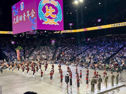 アリーナフロアに直接着座する自由観覧形式で行われた演舞は、観客と演者の距離が極めて近く、五感を通じて音・熱気・鼓動を共有できる特別な時間となりました。