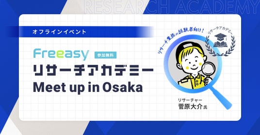 この度、ご好評をいただいておりますオフラインイベント『Freeasyリサーチアカデミー ミートアップ』が、初めて関西に進出!今回は大阪開催となり、テーマは4月に東京にて開催したミートアップと同様、「リサーチ担当者の目標設定・評価設計を考える」です。