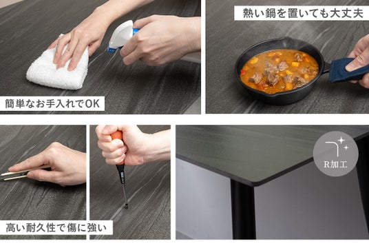 様々な耐久性があり、お手入れが簡単。シックな色合いや上質な雰囲気を長期間キープし、上質な雰囲気のダイニングシーンを演出します。