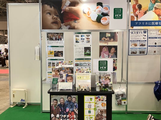 JCVのブースでは今回、30年以上に渡る「子どもワクチン支援」活動について、「支援国の現状」や「現地関係者へのインタビュー」などを、映像も用いてわかり易くご案内する予定です。また、自社の業務に関連付けたルールを決めて行う支援の「タイアップ協力」、日常の中で手軽に行える「ペットボトルキャップ回収」や「ハガキ・切手回収」など、様々な支援方法とその参加方法もご紹介いたします。是非お立ち寄りください。