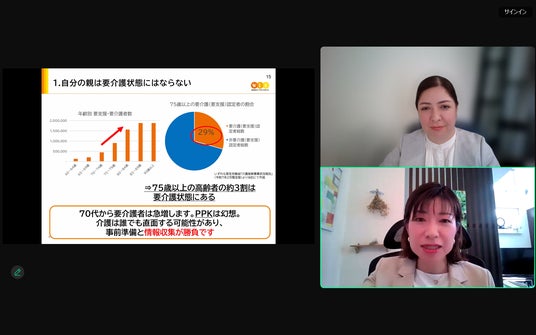 ▲2022年6月5日「介護と仕事の両立セミナー」(上段:新井セラ講師、下段:桜田陽子講師)