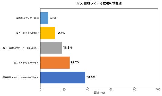 設問:脱毛に関する情報収集で、最も信頼している情報源は何ですか?