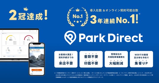 「Park Direct(パークダイレクト)」(https://www.park-direct.jp)は、駐車場にまつわるあらゆる業務(集客・契約・決済・顧客管理)を一気通貫でデジタル化するモビリティSaaSです。月極駐車場の各種手続き(※2)を全てオンラインで完結させ、不動産会社様や借主様の駐車場契約・管理にまつわるアナログなプロセスを大幅に削減します。さらに、駐車場ごとのデータに基づきオンライン/オフラインを問わない様々な集客施策を設計、展開し、月極駐車場の稼働率アップ、オーナー様の収益アップに貢献いたします。