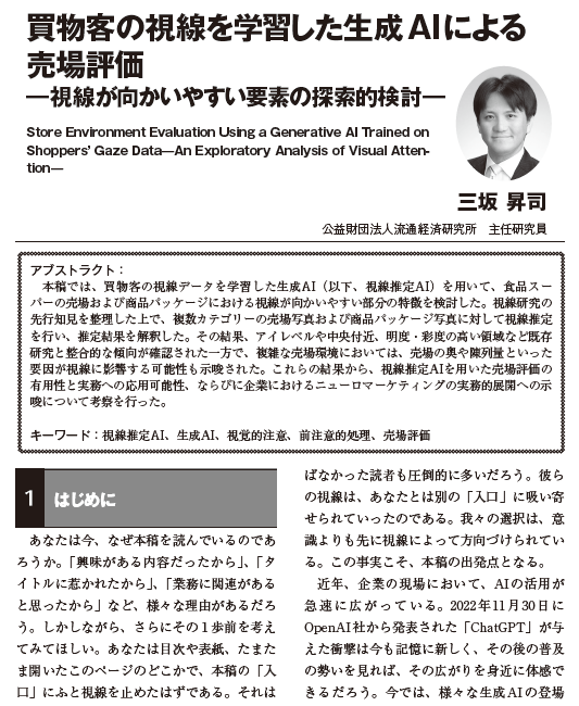 「買物客の視線を学習した生成AIによる売場評価―視線が向かいやすい要素の探索的検討―」