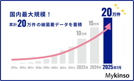 株式会社サイキンソー(本社:東京都渋谷区、代表取締役:沢井 悠、以下サイキンソー)は、腸内フローラ検査「マイキンソー(Mykinso)」などを通じて収集した細菌叢検体数が、2025年7月時点で20万件を突破したことをお知らせします。