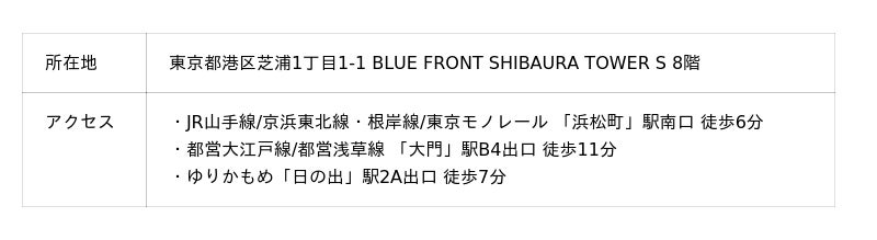 所在地:東京都港区芝浦一丁目1番1号 BLUE FRONT SHIBAURA TOWER S