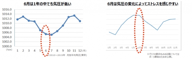 今回の調査で回答が多かった「だるさ」や「頭痛」、「冷え」は、“気象病”と呼ばれる、気圧や気温の変化によって起こるさまざまな体調不良の症状の一つとして考えられます。6月は、天候が悪い日が多く、低気圧の影響を多く受ける月です。リンパの流れや血流循環は、外からの圧が適度にかかることで安定するため、圧が弱くなるほど循環が悪くなってしまいます。そのため、低気圧の日は、体の中の循環が悪くなり、血流低下、新陳代謝の低下につながり、それによって肌のバリア機能の低下も進むのです。