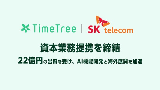 株式会社TimeTree(本社:東京都新宿区、代表取締役社長:深川泰斗)は、韓国最大手の通信事業者であり、生成AI・AIインフラ・AI半導体など幅広い領域でグローバルに事業を展開するSK Telecom社(以下、SKT)と資本業務提携を締結し、SKTより22億円の出資を受けることをお知らせいたします。