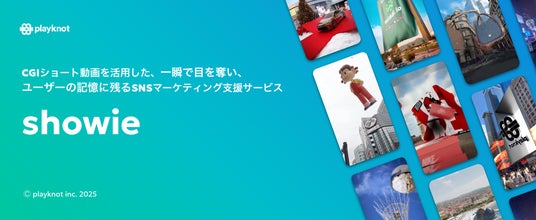 株式会社playknot(代表取締役:本屋敷 匠真 / 山口 恭兵 以下、当社)は、実写映像×3DCG技術を活用したCGIショート動画を活用したSNSマーケティング支援サービス「showie」の提供を開始したことをお知らせいたします。これにより、SNSで動画を活用するマーケティング施策の強化を目的とする企業様へのサポートを実現します。